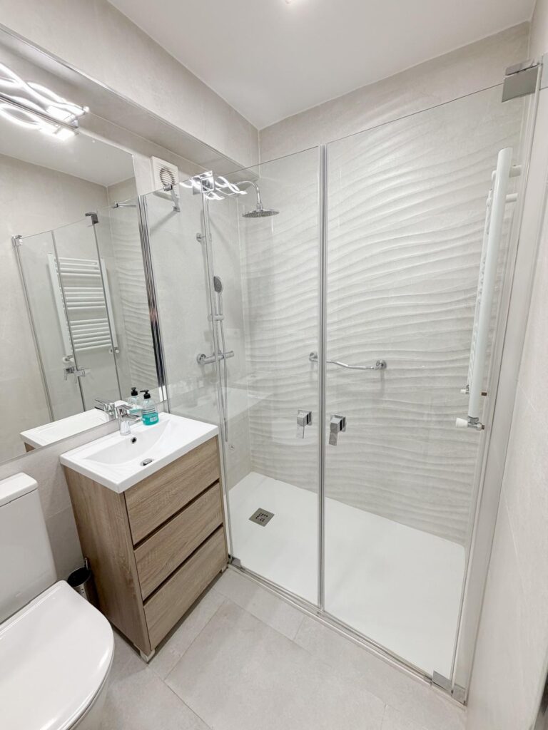 El apartamento se distribuye en un espacio diáfano muy luminoso, que integra cocina americana totalmente equipada, zona de estar, comedor, descanso y terraza. Dispone de sofá dos cuerpos, mobiliario completo, mesa de comedor con sillas, un dormitorio amueblado con cama de matrimonio y amplio armario cuenta con baño completo en suite, con puertas correderas para optimizar espacio.